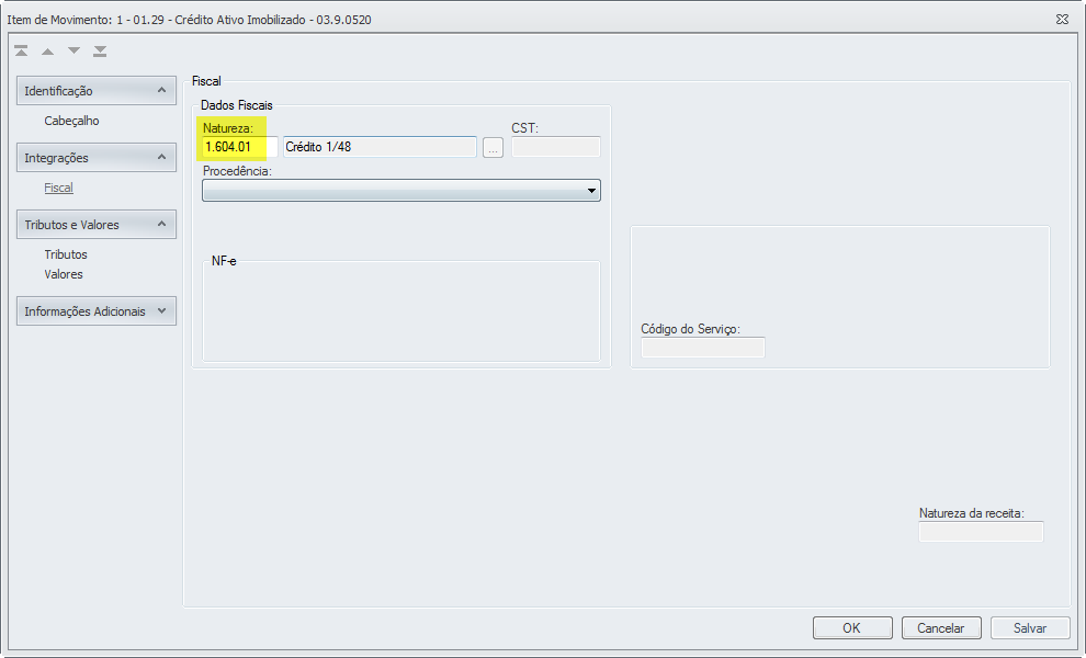 • Natureza Fiscal