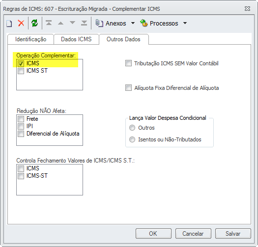 Para este tipo de operação com redução de base de ICMS a diferença em os campos Base ICMS e Base Tributada ICMS será gravado automaticamente no campo Isento ou Outros.  de acordo com o parametrizado na Regra de ICMS “Colocar Redução em”.
