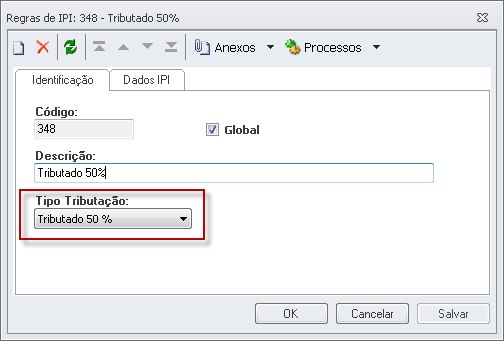Esse tipo de parametrização deve ser utilizada em operações de compra em que ocorra o destaque do IPI pela Nota Fiscal do fornecedor mas que por exigência da legislação o IPI será creditado pela entrada somente com 50% do valor do tributo.