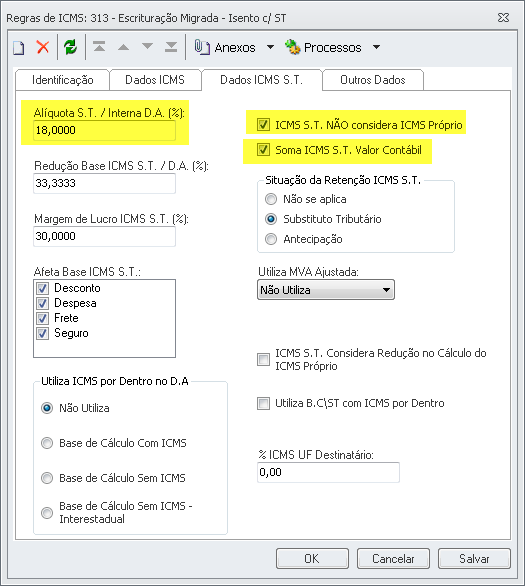 ICMS S.T. NÃO considera o ICMS Próprio: Habilitado