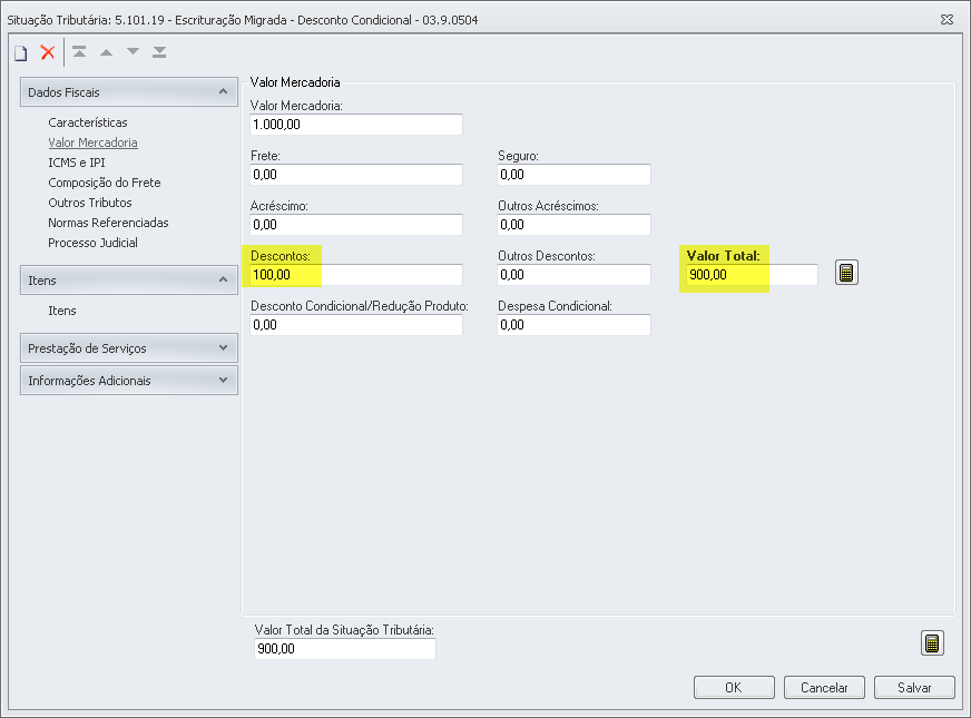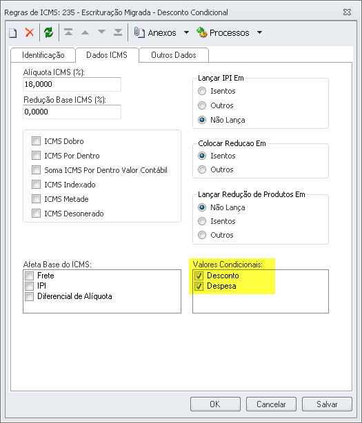 Nesse tipo de situação tributária com desconto condicional para o IPI, o valor do desconto afetará apenas a base de cálculo do ICMS e o valor contábil do Lançamento Fiscal.