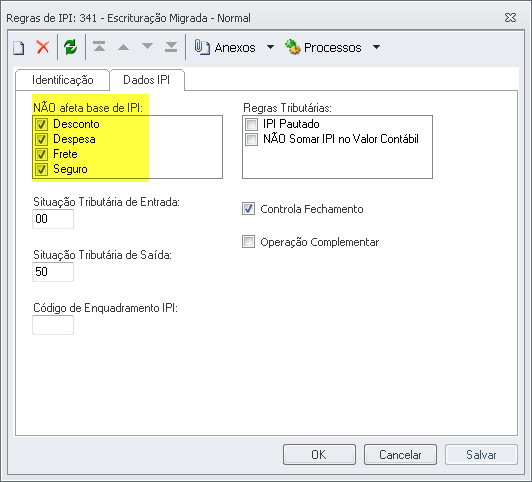 NÃO afeta base de IPI: Habilitado