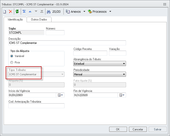 • Quando o movimento possuir item será verificado o cadastro dos tributos informado, caso não tenha item será verificado os tributos no movimento.