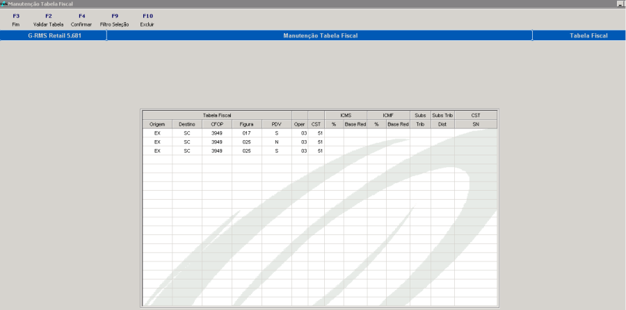 Pressionar a tecla ShF3-Manutenção de Impostos.