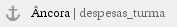 | CODTURMA | Codigo da Despesa | VDESPESA.CODTURMA | | CODDESPESA | Codido da Despesa | VDESPESA.CODDESPESA | | DATAINIPER | Data Inicio Periodo | VDESPESA.DATAINIPER | | DATATERPER | Data Fim Periodo | VDESPESA.DATATERPER | | VALOR | Valor | VDESPESA.VALOR |
