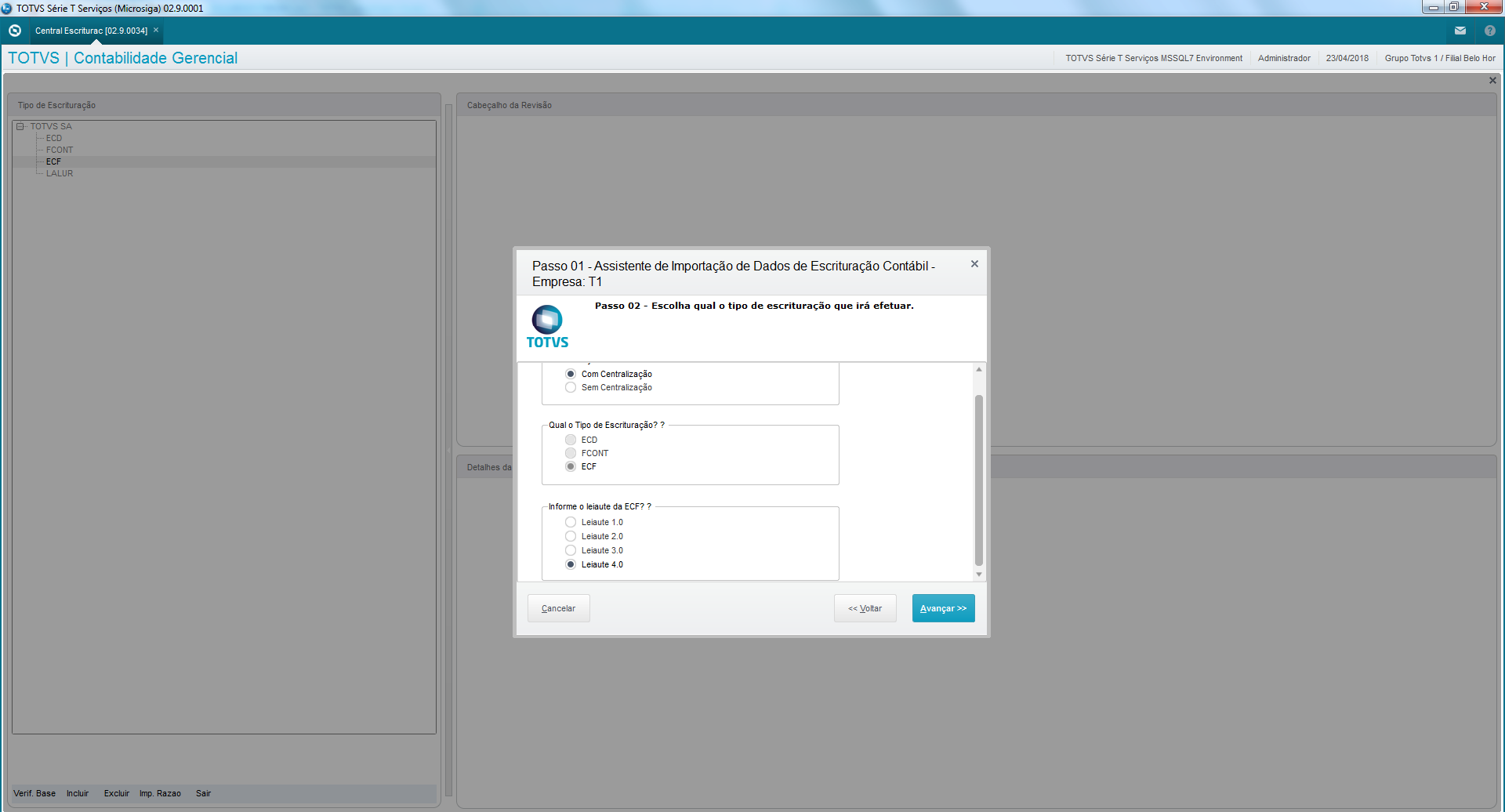Ação desenvolvimento: Ajustar wizard para selecionar leiaute 4.0 (padrão)