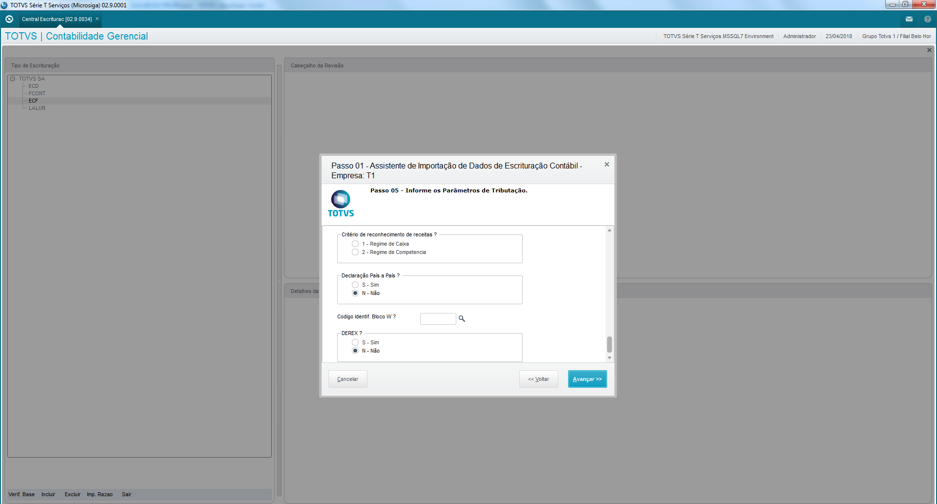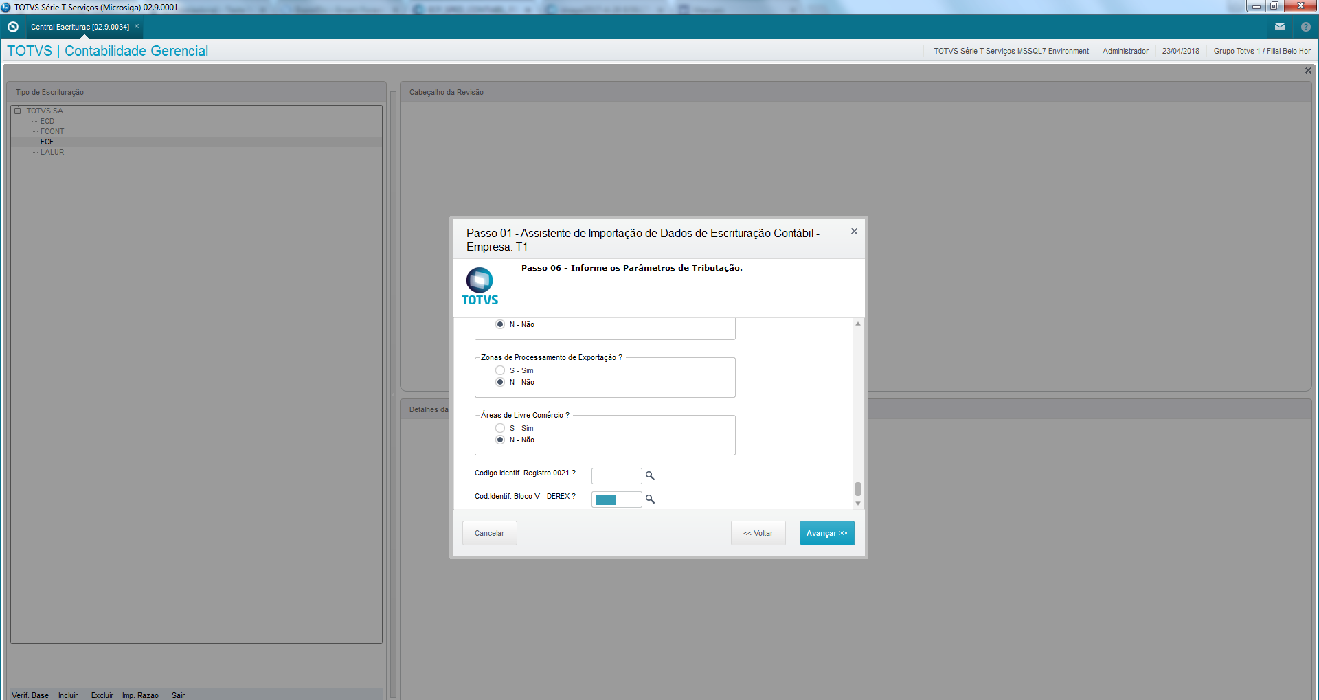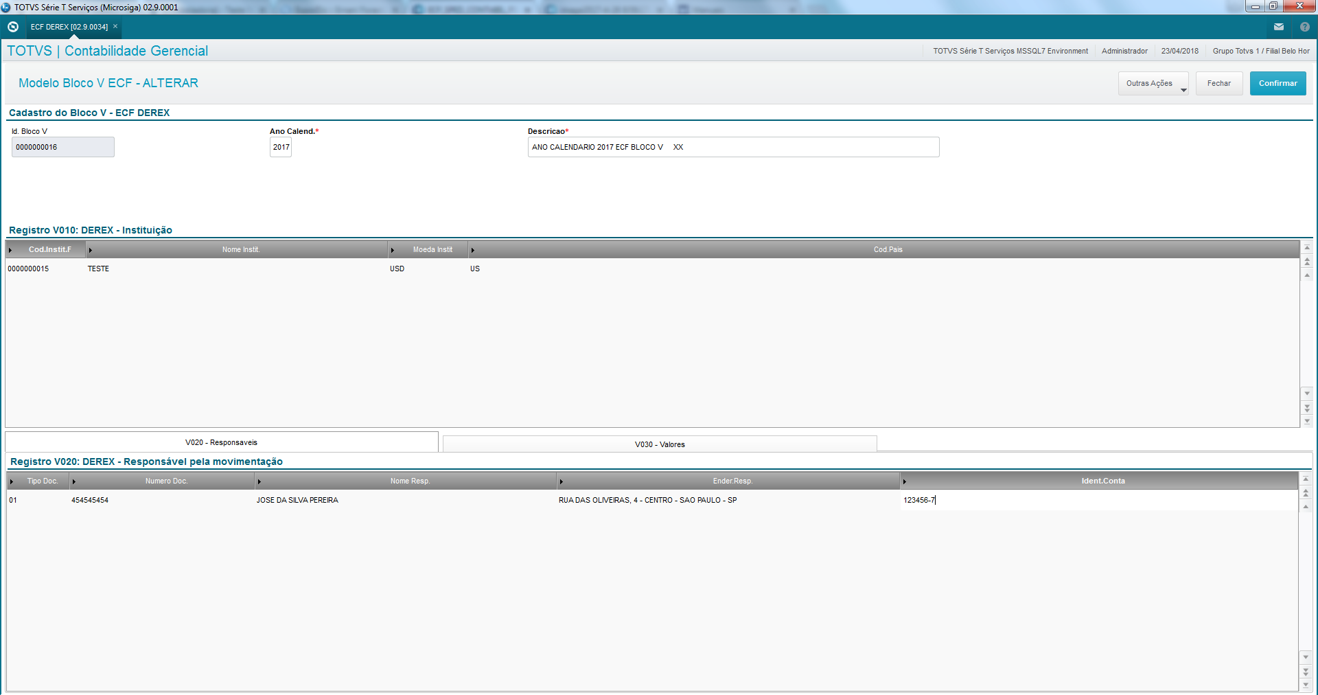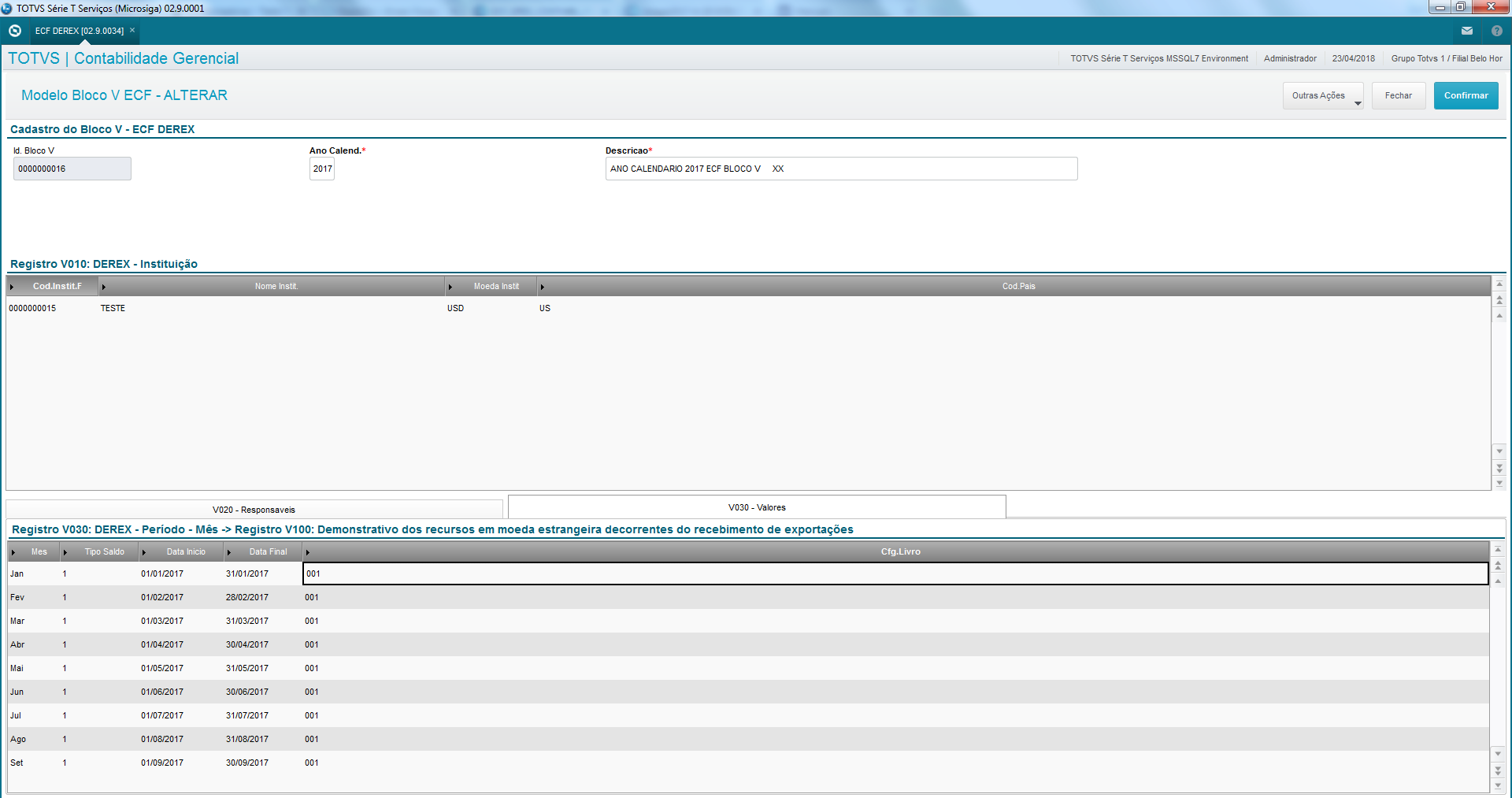 Ação desenvolvimento: Será criado um cadastro contendo os registros do bloco V onde este recebera um identificador para ser linkado no momento do preenchimento do Wizard para extração dos dados da ECF