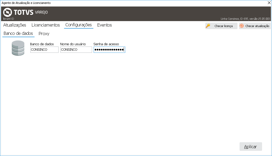 A ferramenta deve estar sempre apontada para o banco de dados de Produção do ERP. Não apontá-la para outros tipos de ambiente, como de Teste ou Homologação para evitar problemas com a não renovação das licenças. |