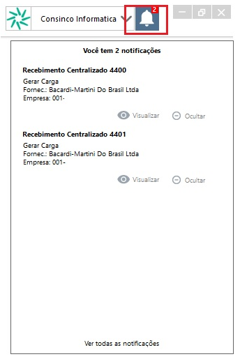 Ao clicar em ‘Ocultar’ a notificação é marcada como lida e não mais exibida na lista de notificações, para visualizá-la novamente acesse a Central de Notificações.