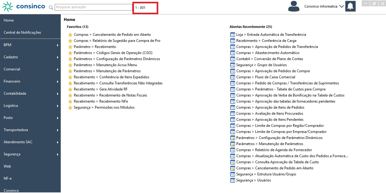 Ao acessar uma aplicação pelo Consinco Menu ela será aberta no módulo no qual está vinculada internamente, independente se a aplicação está presente em outros módulos.