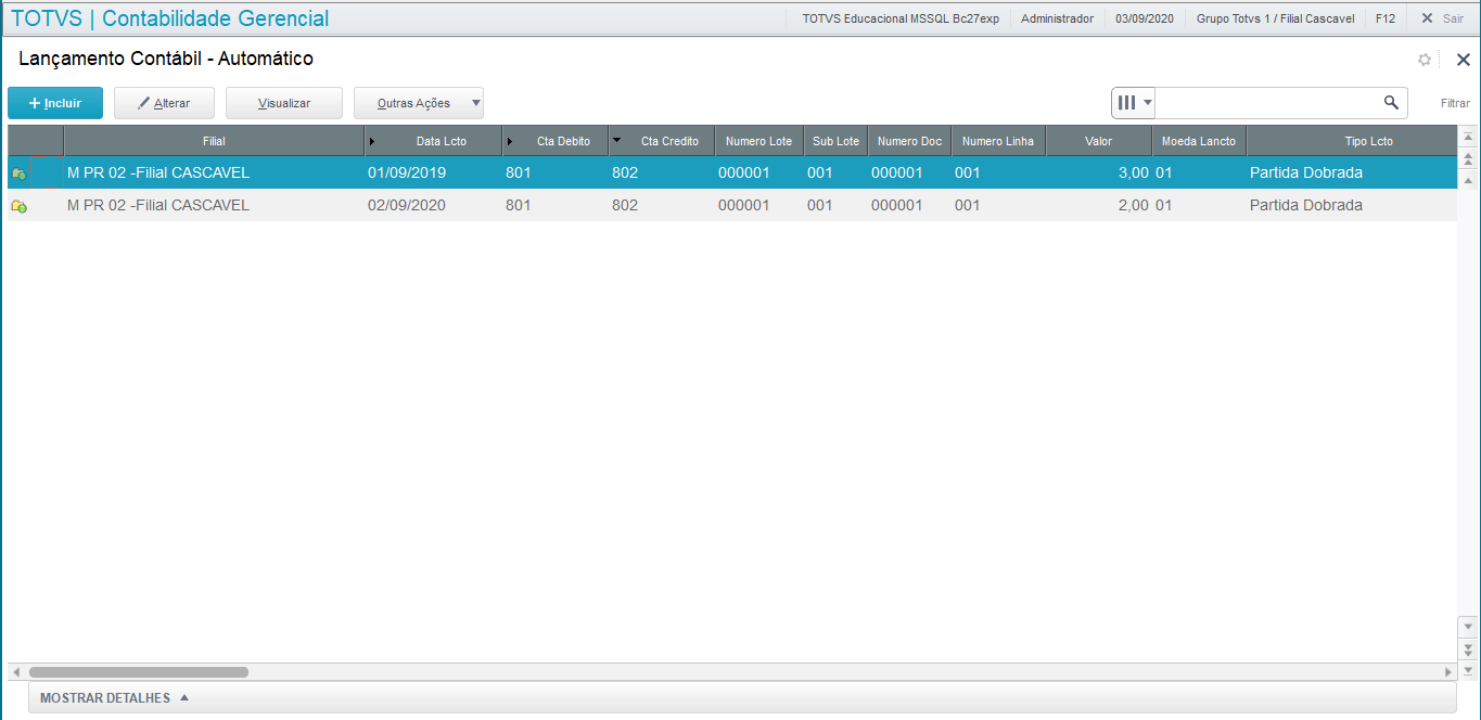 Realizado os movimentos de 3,00 em 2019 e 2,00 em 2020. |