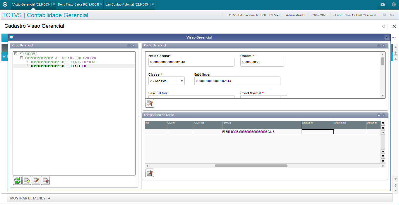 Neste documento será explicado como é feita e como reage a utilização da expressão especial (FTENTIDADE) nos campos de Formula na visão gerencial, e como pode ser usado no relatório de Demonstrativo de Fluxo de Caixa