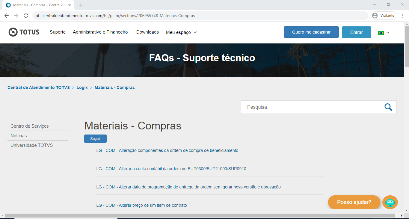 SUP22002 Forma de consulta de ordens já integradas ao Portal de Compras