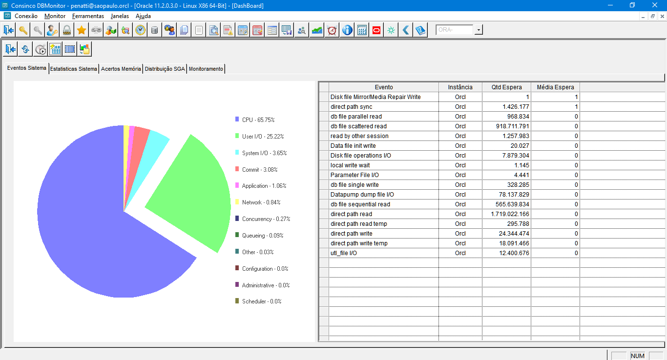 Visualiza os eventos de espera da instância, Top SQL, Top Hard Parse e Top Índices.