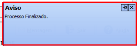 Após e envio aguarde a mensagem de "Processo Finalizado" no canto inferior direito da tela.