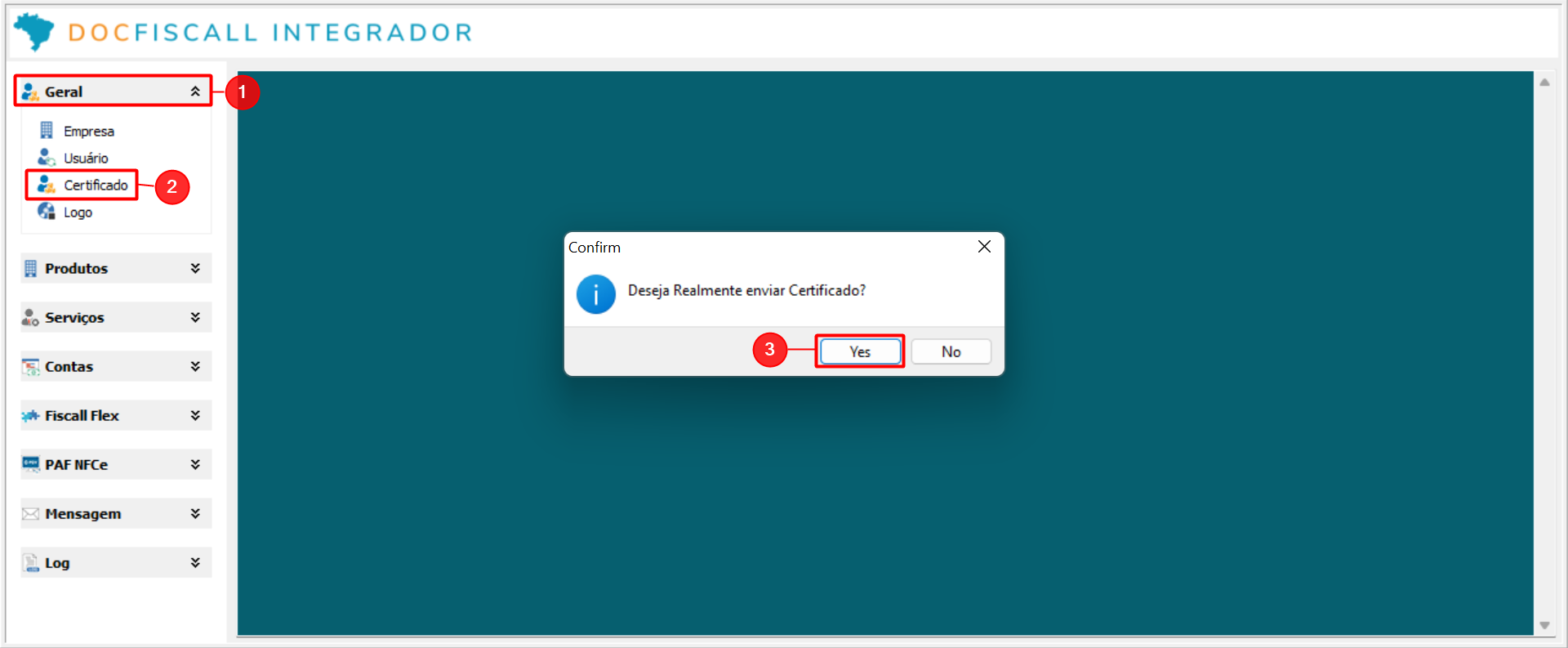 O sistema exibirá a caixa de confirmação para o envio do certificado.