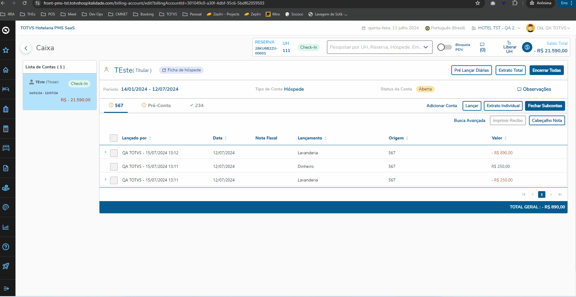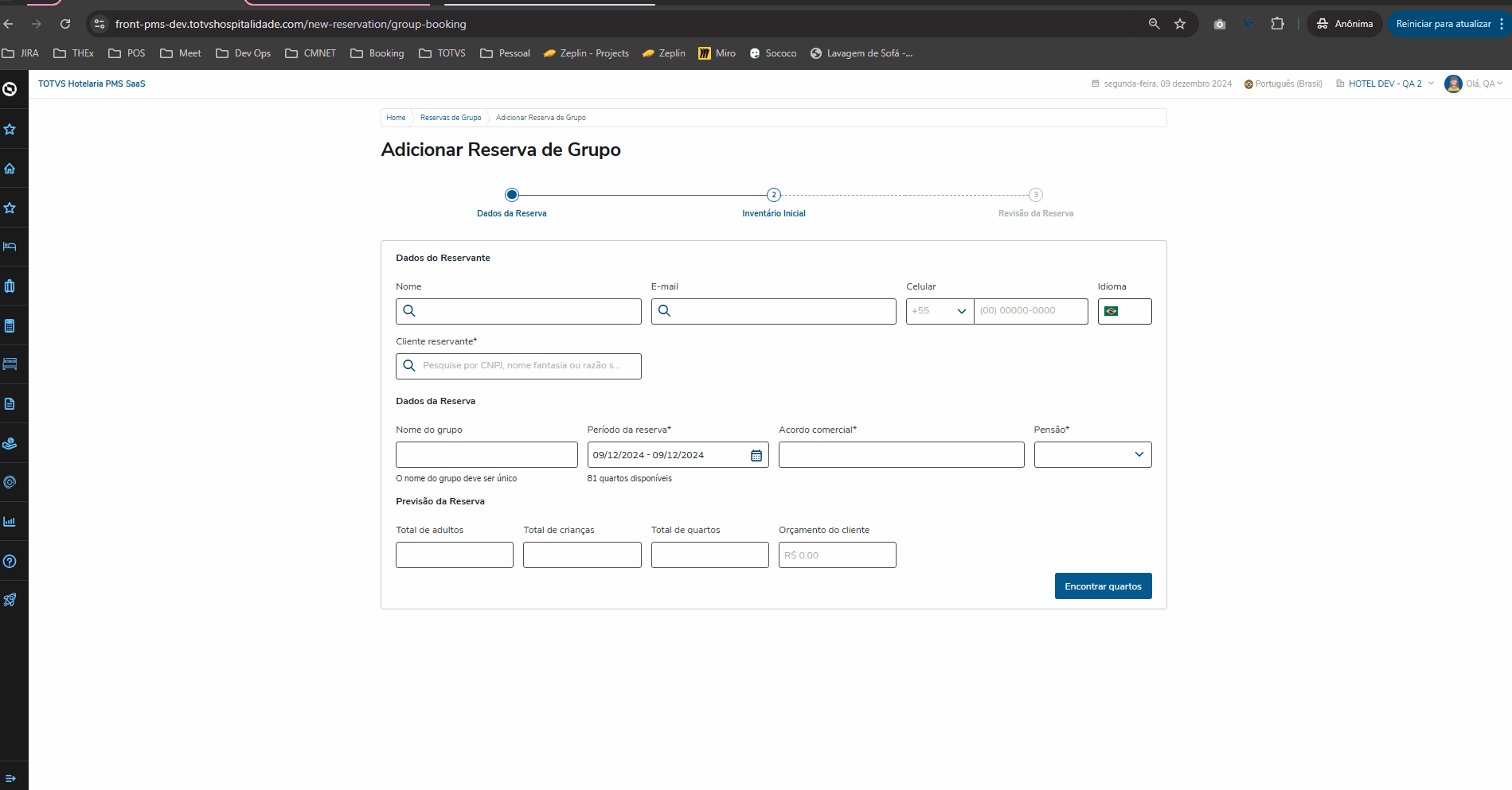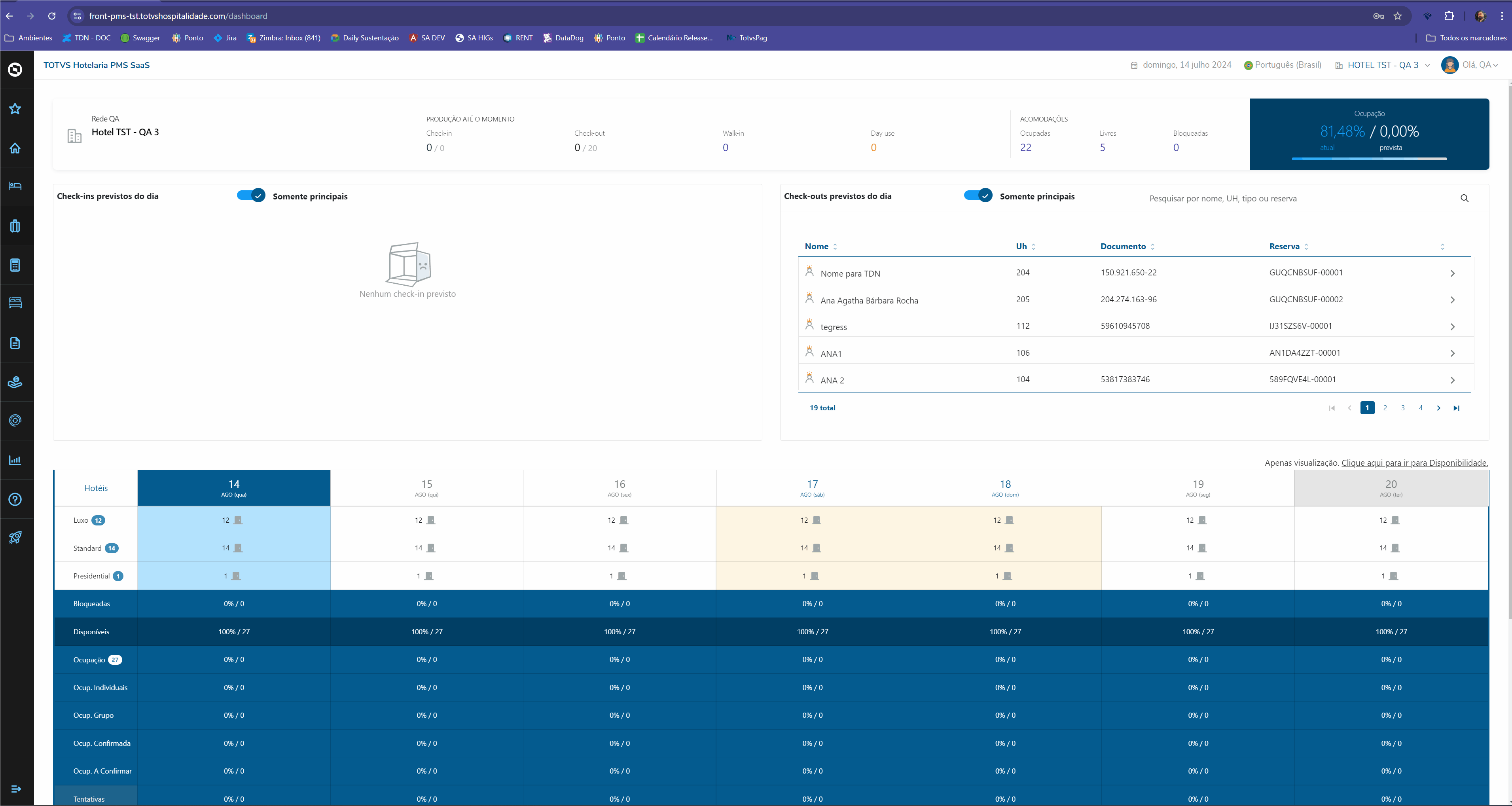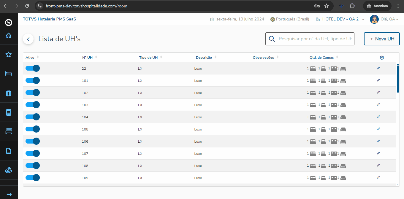 3. Quarto vago: O quarto deverá estar assignado na reserva/hóspede e status vago no momento do Check-In;