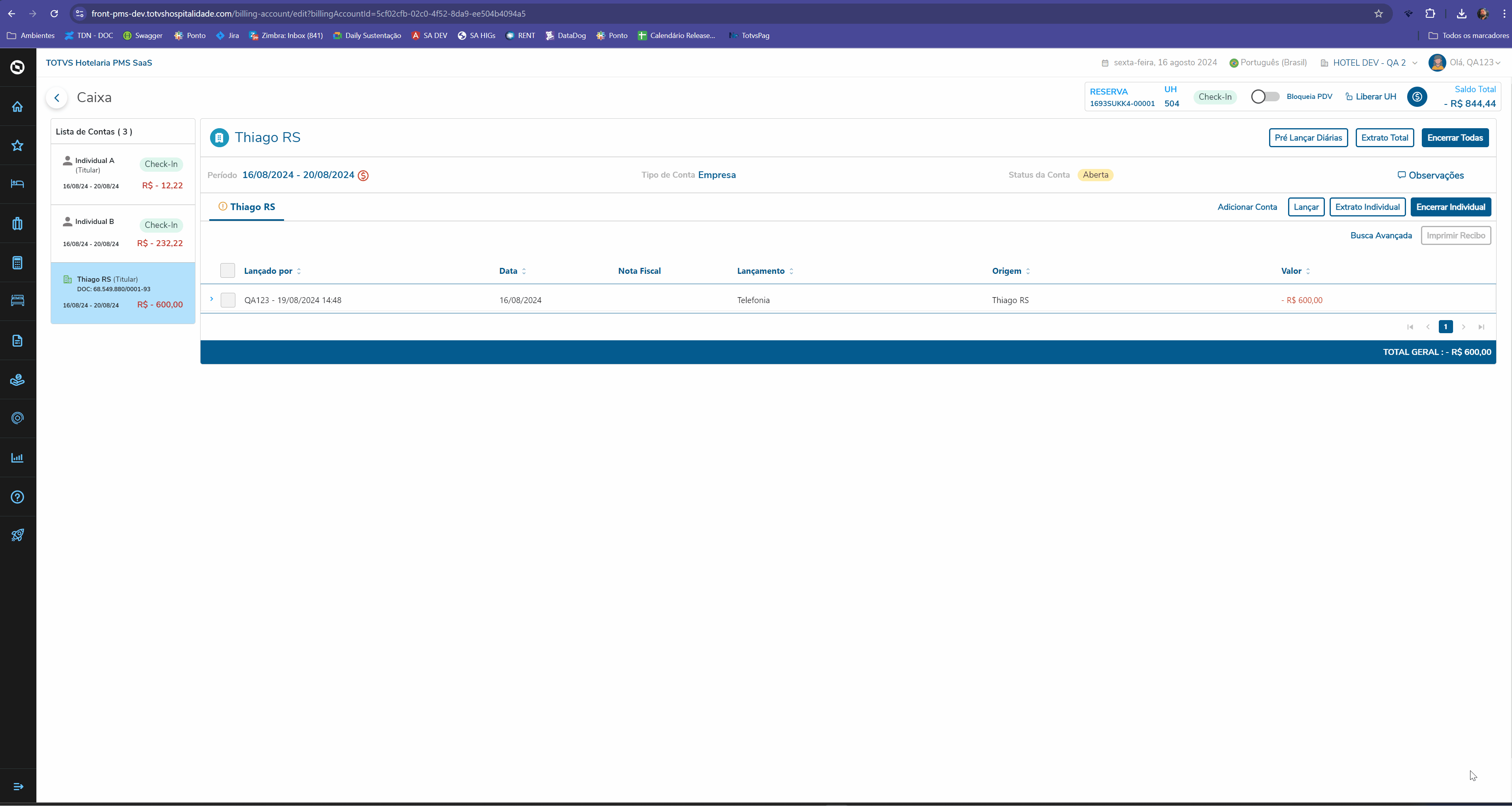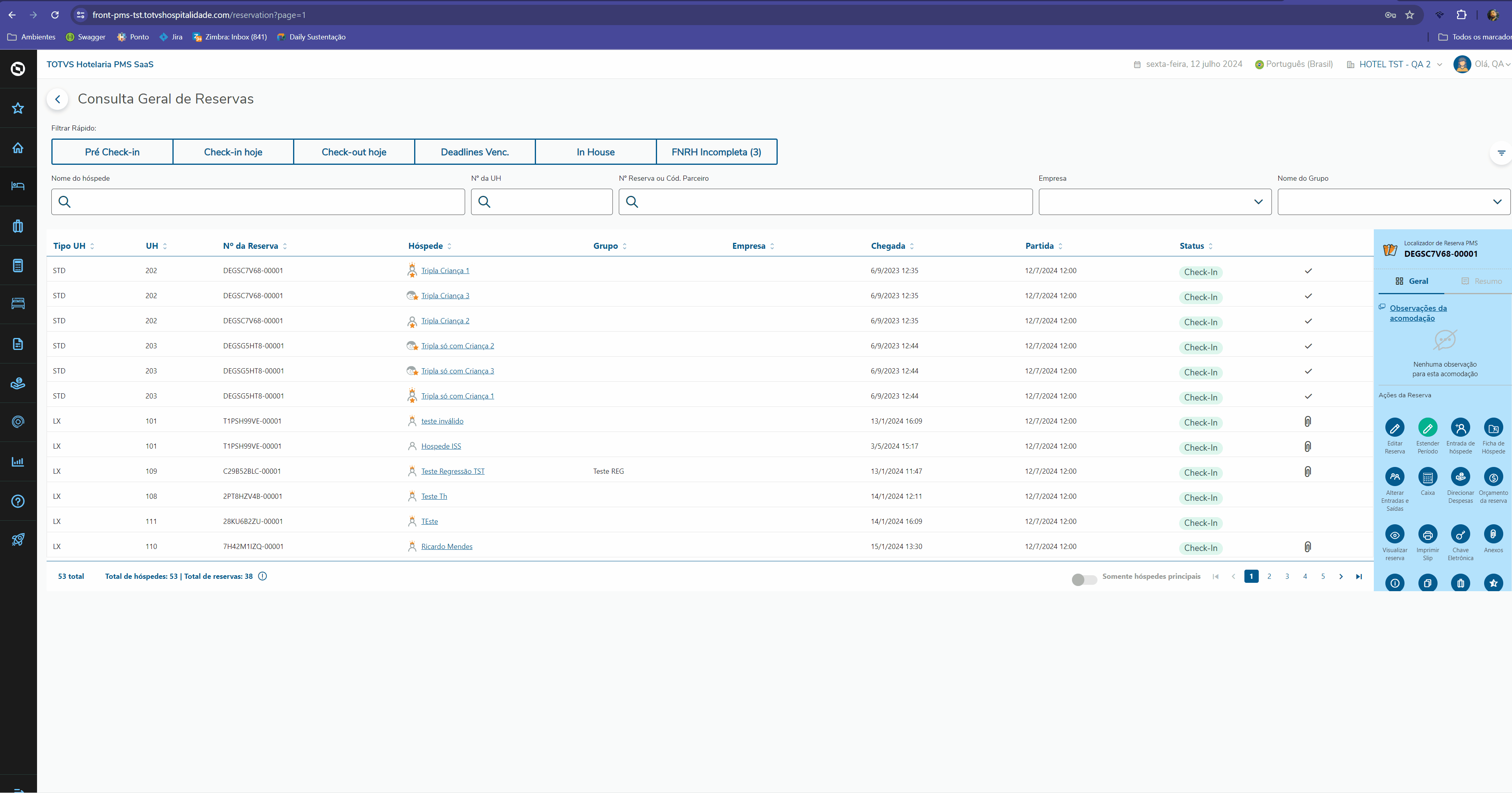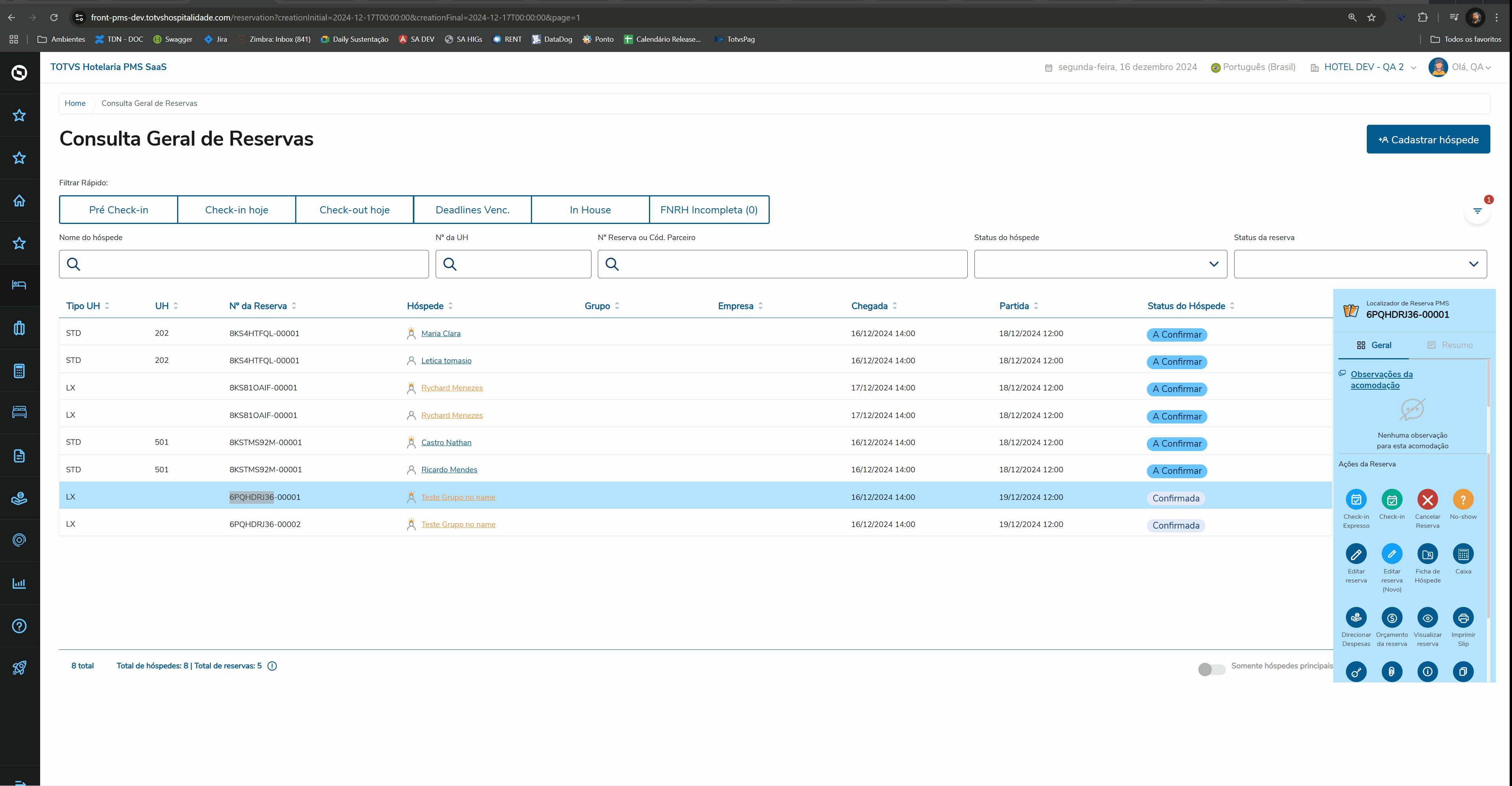 Implementamos o Check-In em Lote, com o objetivo de realizar o check-in simultâneo de múltiplos hóspedes de forma eficiente e organizada.