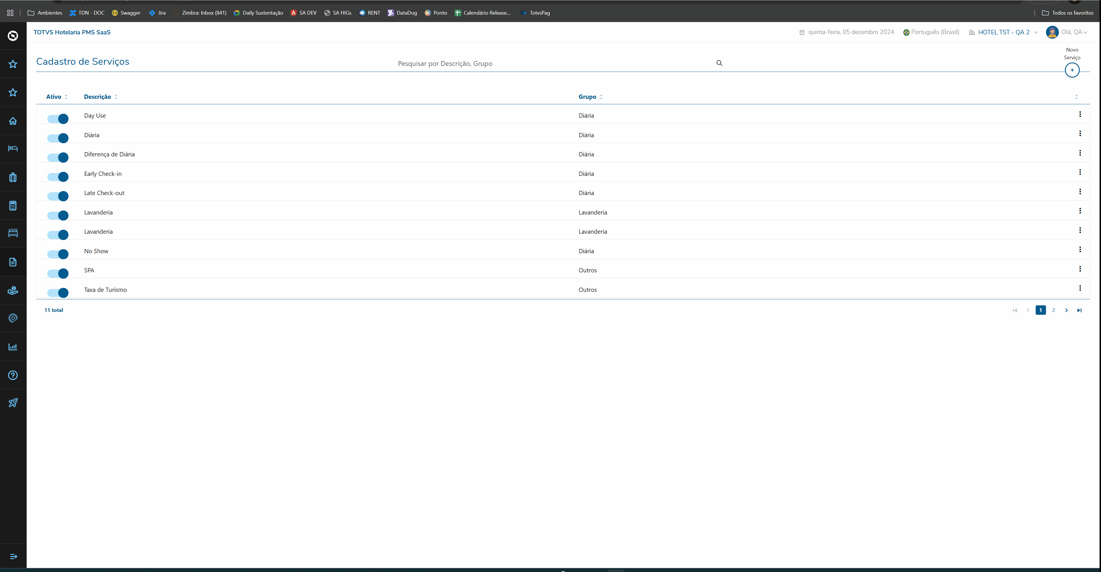 4. Data de entrada: O PMS SaaS lista todos os hóspedes com data de entrada igual a data do sistema, sendo hóspedes de grupo ou individuais.