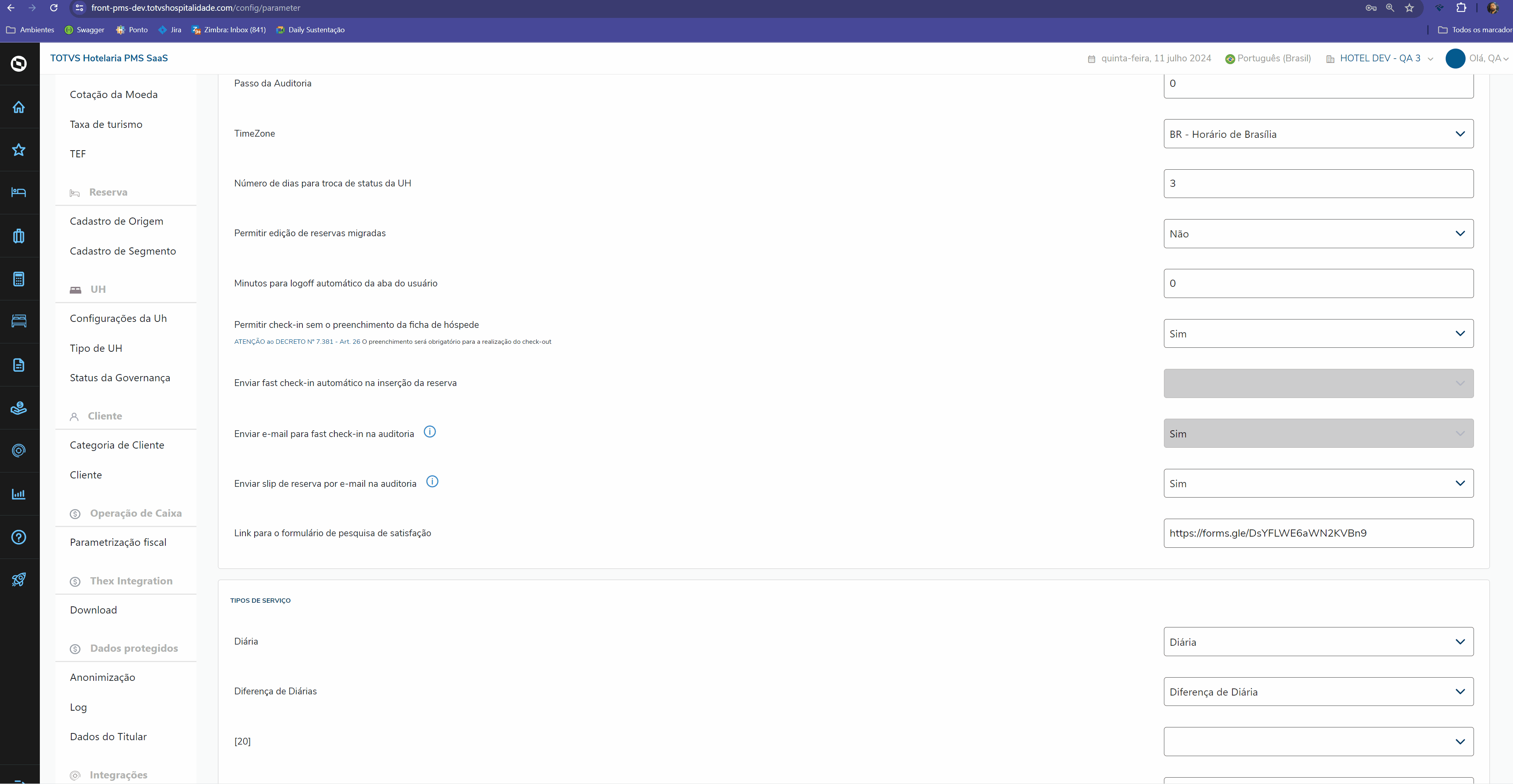 5. Status da governança: O PMS SaaS não valida status da governança, logo, o check-in simultâneo pode ser realizado com status da governança Limpo, Sujo, Manutenção, Inspeção etc.