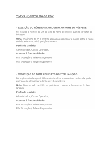 Na operação, o sistema passa a exibir as UHs dos hotéis integrados, possibilitando que, ao realizar operações em mesas, o usuário selecione hóspedes de diferentes hotéis, escolhendo previamente o hotel desejado.