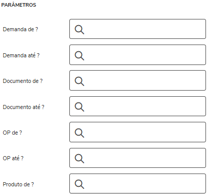 - OP de ? - Indica o intervalo inicial da OP que será considerado na emissão do relatório.
