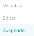 Ao clicar no ícone , é possível visualizar o modal preenchido, editar dados ou suspender o registro de cada item, sendo obrigatório o preenchimento de justificativa para efetivar a suspensão.