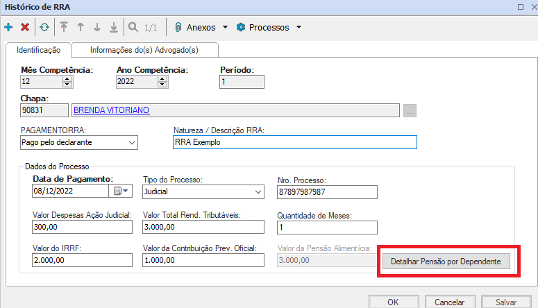 | Função: | Informe de Rendimento- Detalhamento da Pensão Alimentícia |