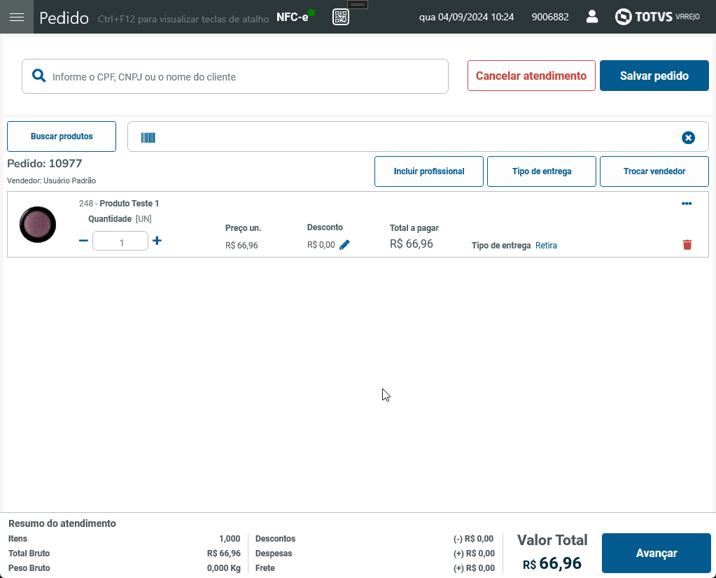 | Módulo: | TOTVS PDV Omnishop - Pedido de venda |