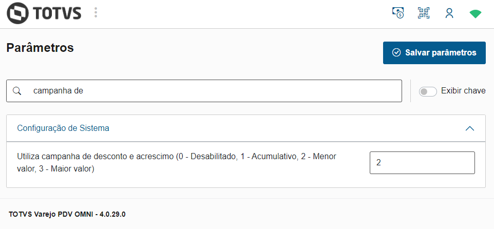 Parâmetro "Utiliza campanha de desconto e acréscimo" configurado como "1 - Acumulativo"