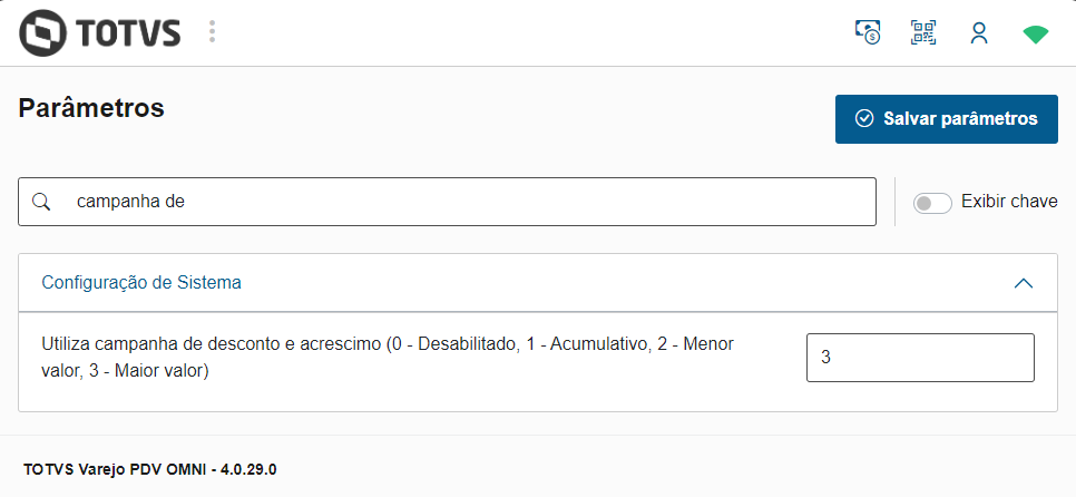 Parâmetro "Utiliza campanha de desconto e acréscimo" configurado como "3 - Maior valor"