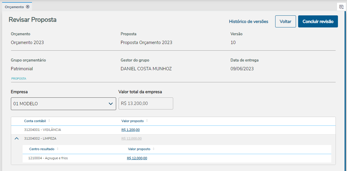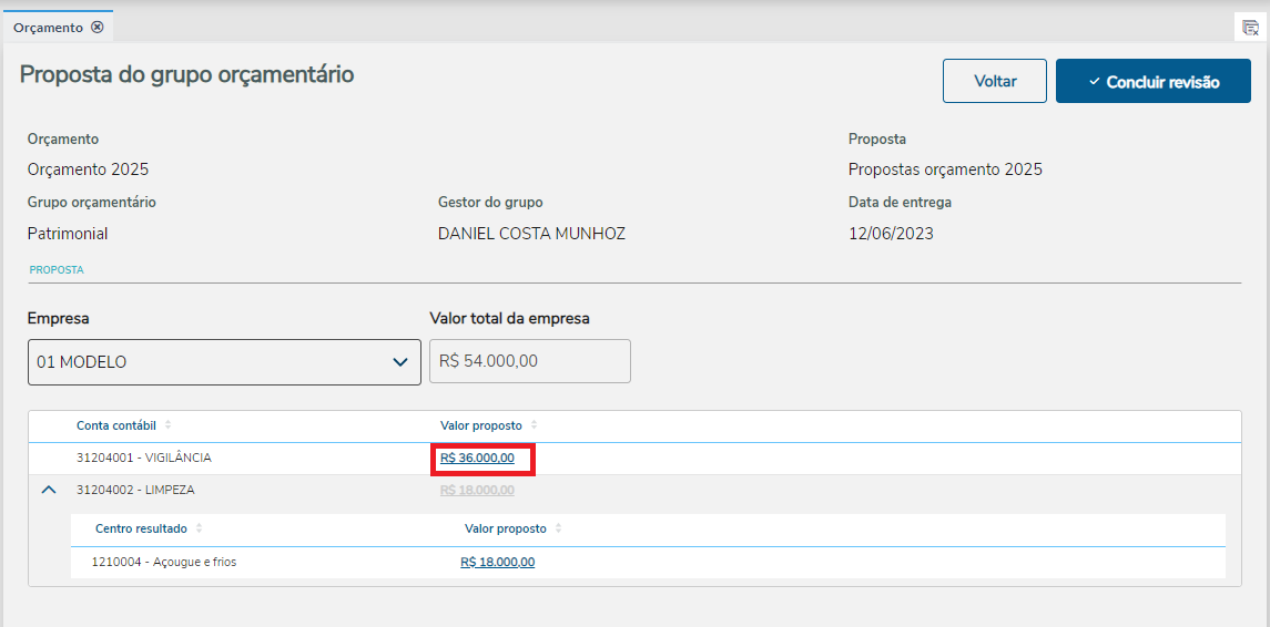 Gestão Orçamentária > Planejamento> Orçamento empresarial - GOR_00002