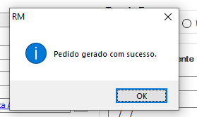 Se a conexão for realizada o exame será enviado e a tela de exames irá exibir uma mensagem de sucesso na integração com a mensagem abaixo.
