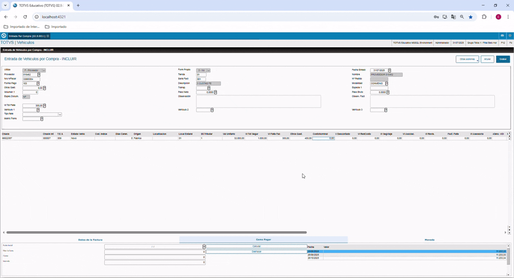 Se ajusto la rutina Entrada por compra (VEIXA001) para que esté adecuada y localizada para el DMS PARAGUAY.