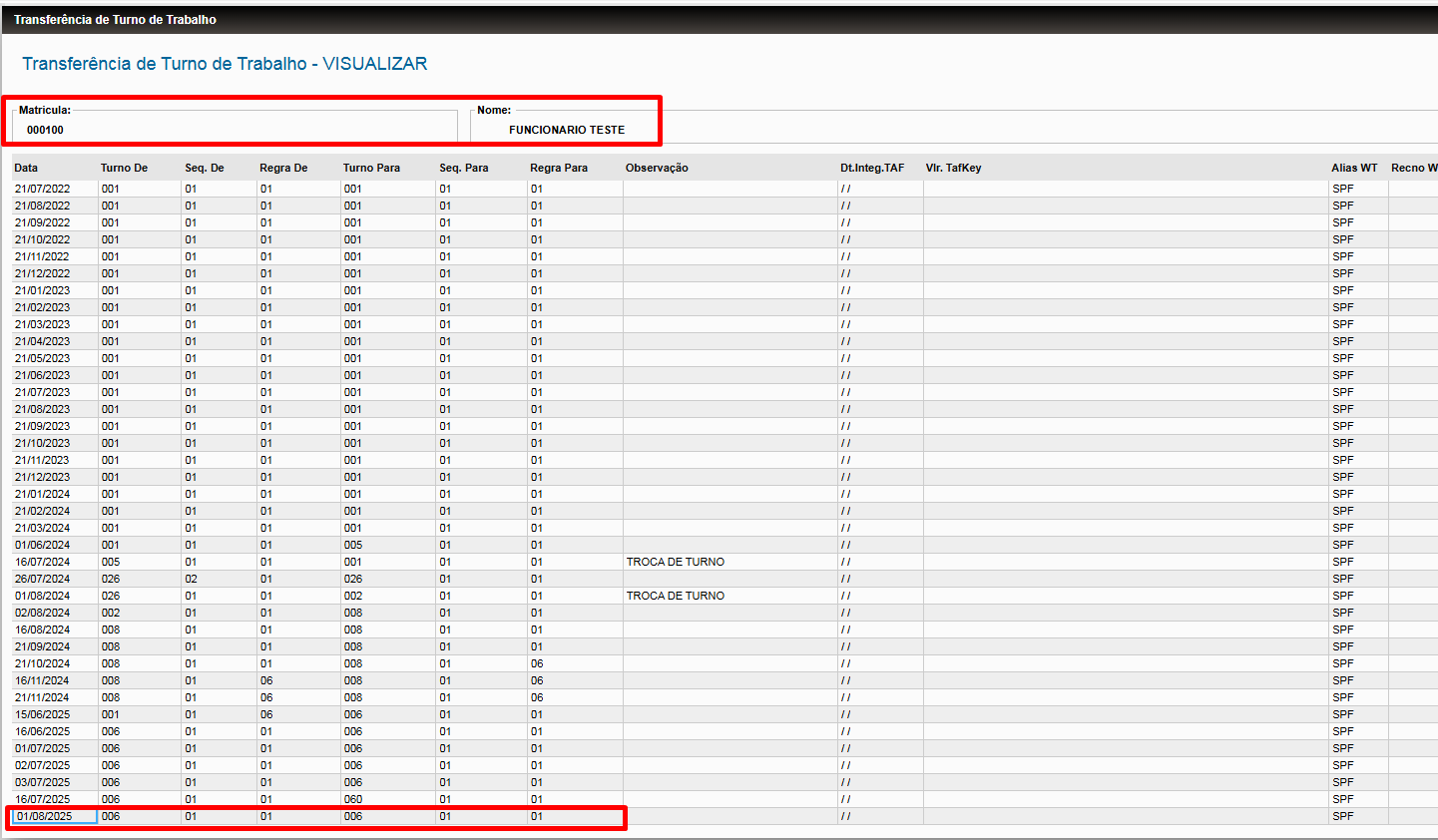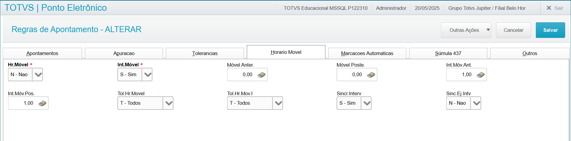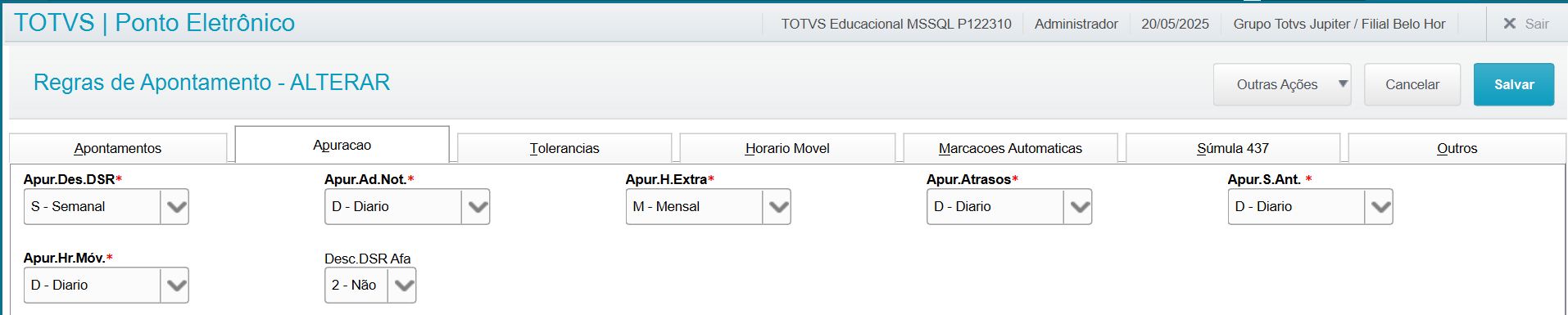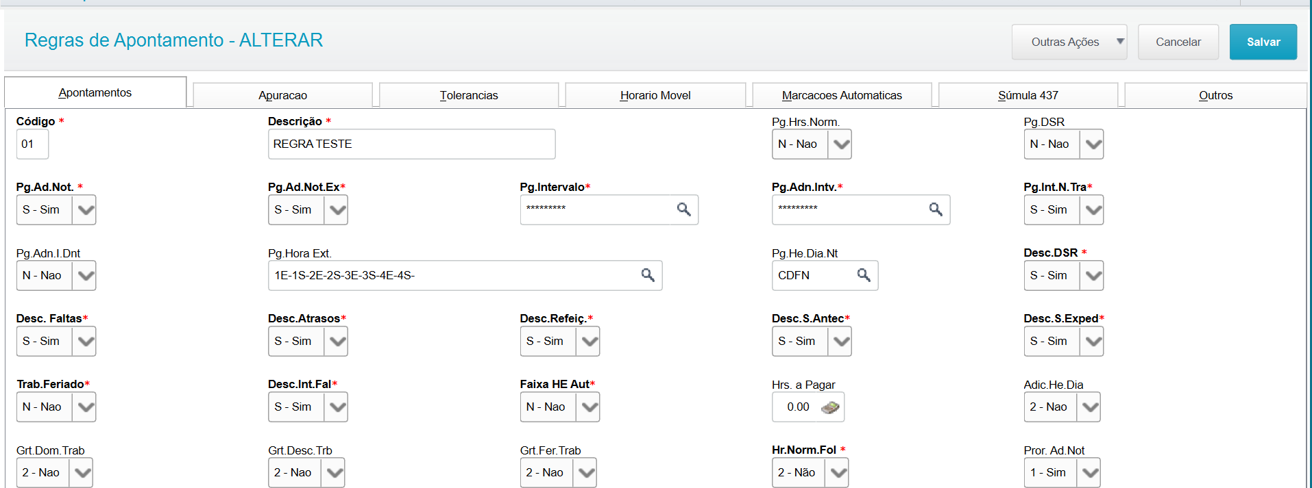 Sempre colocar telasTurno, Regra de apontamento (todas as abas) e Tabela de horário padrão;