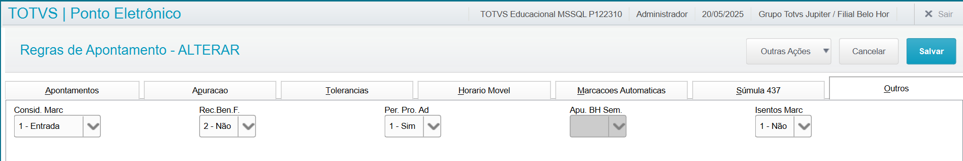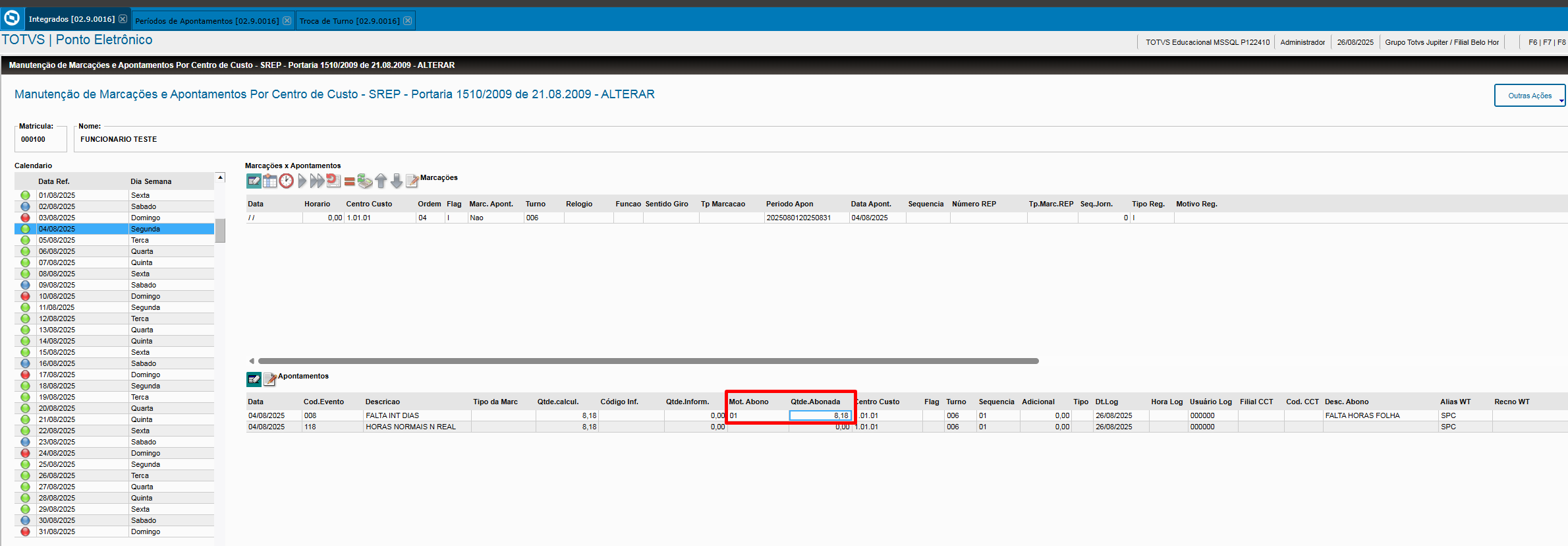 Ajuste na função de gravação do abono, após lançamento do abono sem efetuar o apontamento;