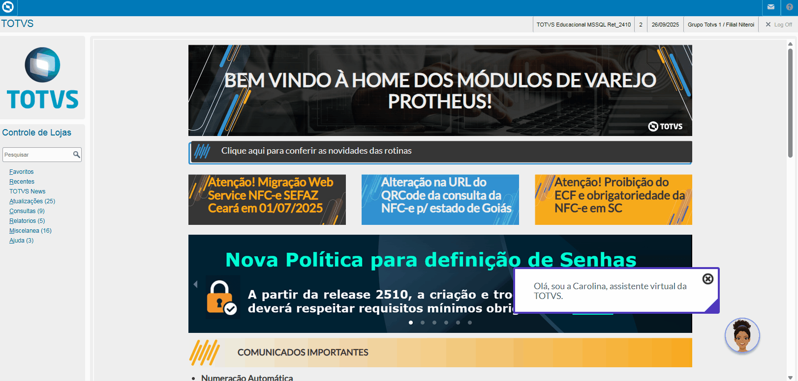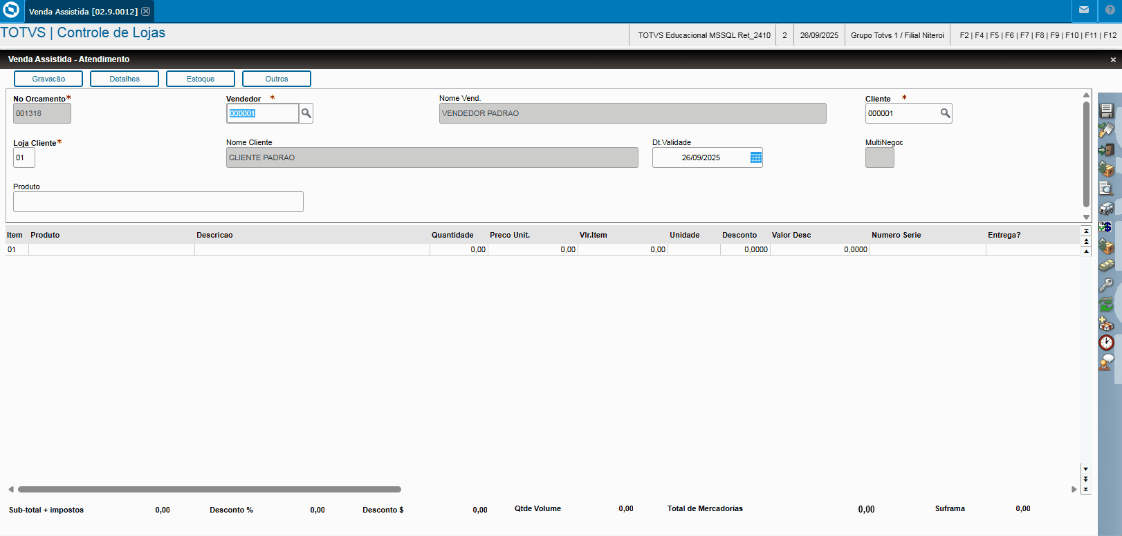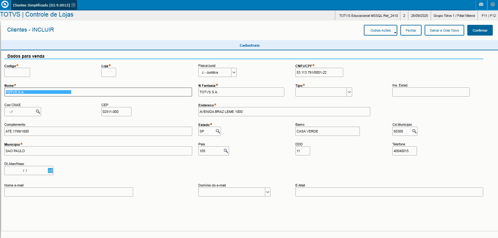 Implementada melhoria com a disponibilização da rotina Cadastro de Cliente Simplificado do Varejo (LOJACADCLI) ,que viabiliza agilidade nas vendas do Varejo.